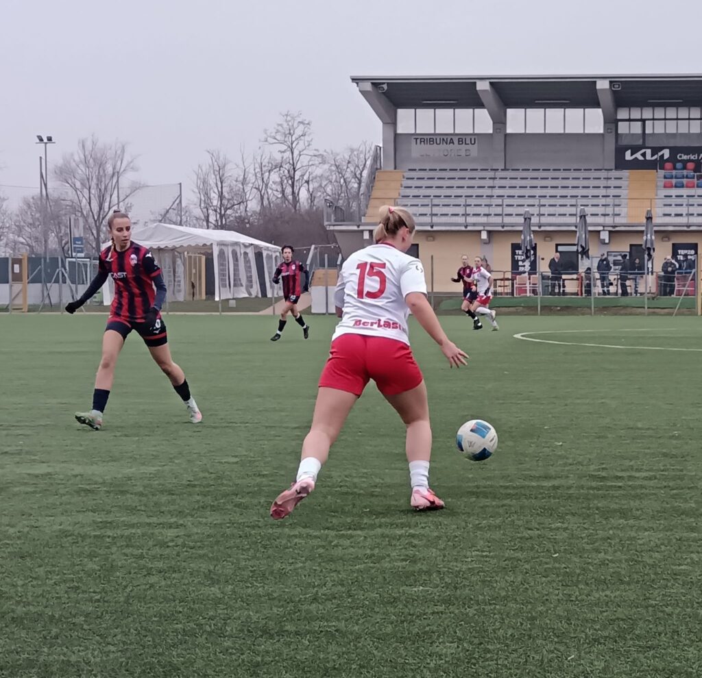 La gara si sblocca subito: Dubini–Manea–Dubini, verticalizzazione perfetta per la Pistolera Pellegrinelli che controlla, avanza e dai venti metri lascia partire un destro sotto la traversa. Capolavoro.